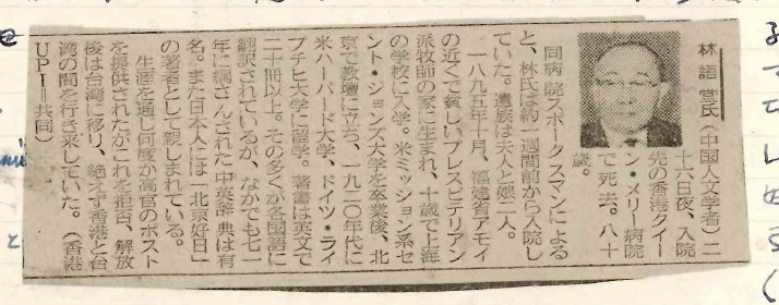 19:00船越その子より章父いま入浴せんとして卒中死と! 69才なりしと。(※船越章:『コギト』同人)
